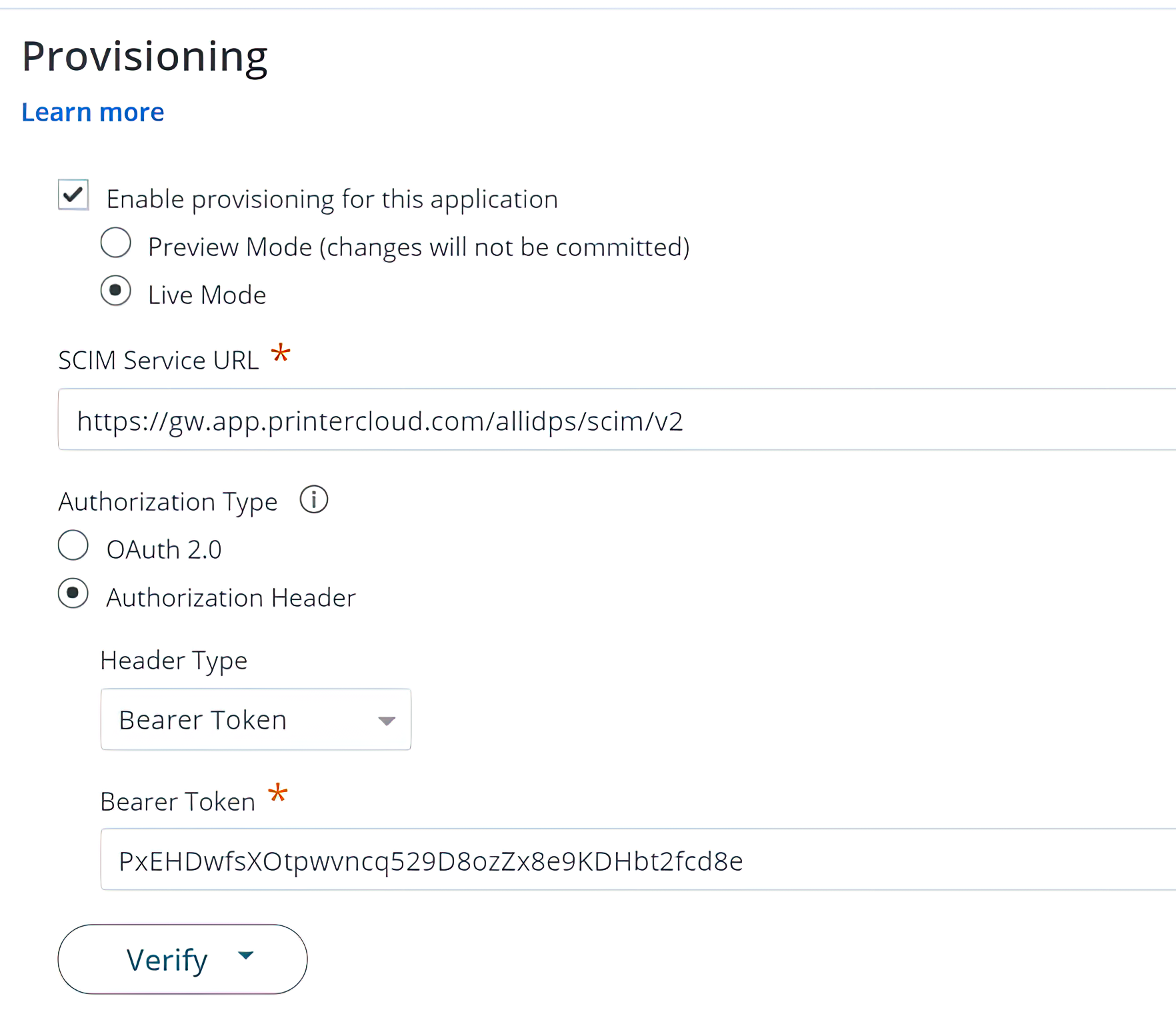 For companies using CyberArk, the relevant information is found under the “SCIM Server URL” and “Bearer Token” fields, which live on the Provisioning page.
