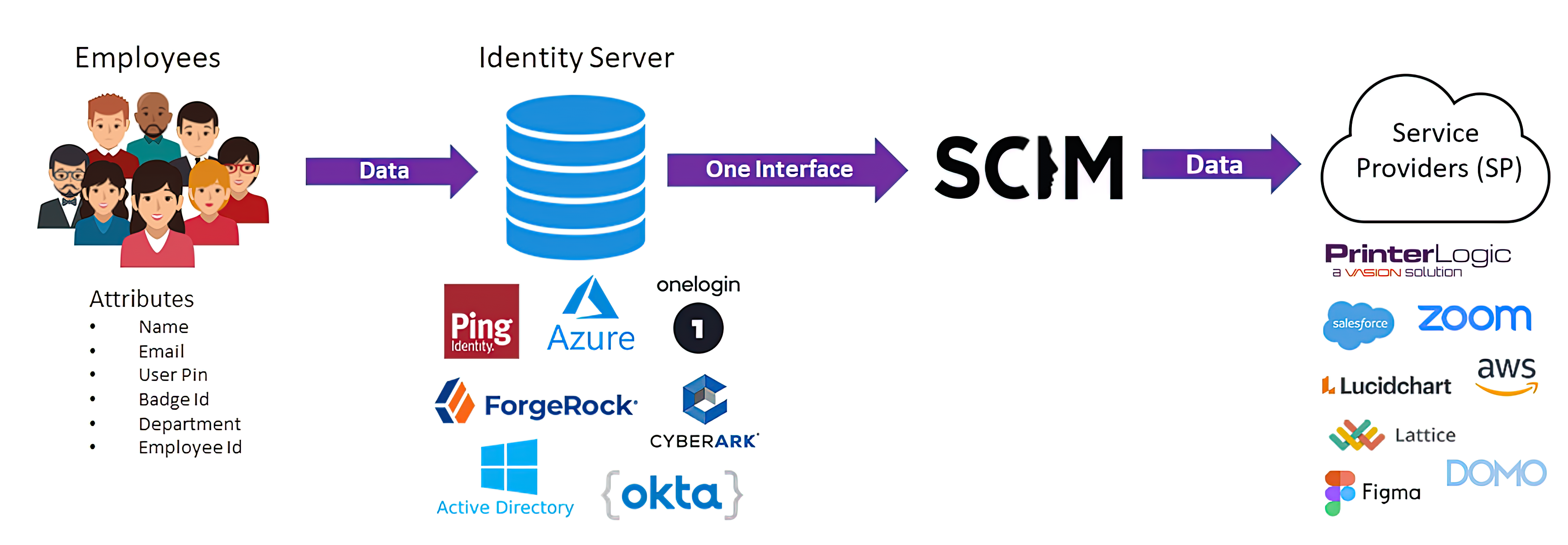 - If an employee’s data changes (name change, email change, etc.), the IdP uses SCIM to push the data updates to SCIM-enabled apps like PrinterLogic.