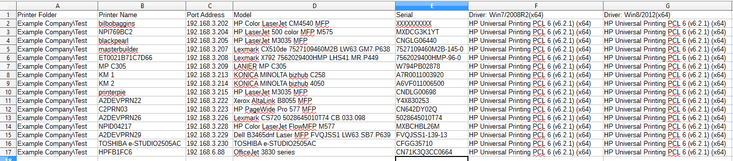 - Add the name of the driver EXACTLY as it shows up in the PrinterLogic repository to the correct Column.