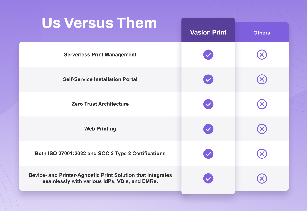 Don’t believe it’s that simple? We’ve broken down how Vasion Print compares to competitors to better help you weigh your options.